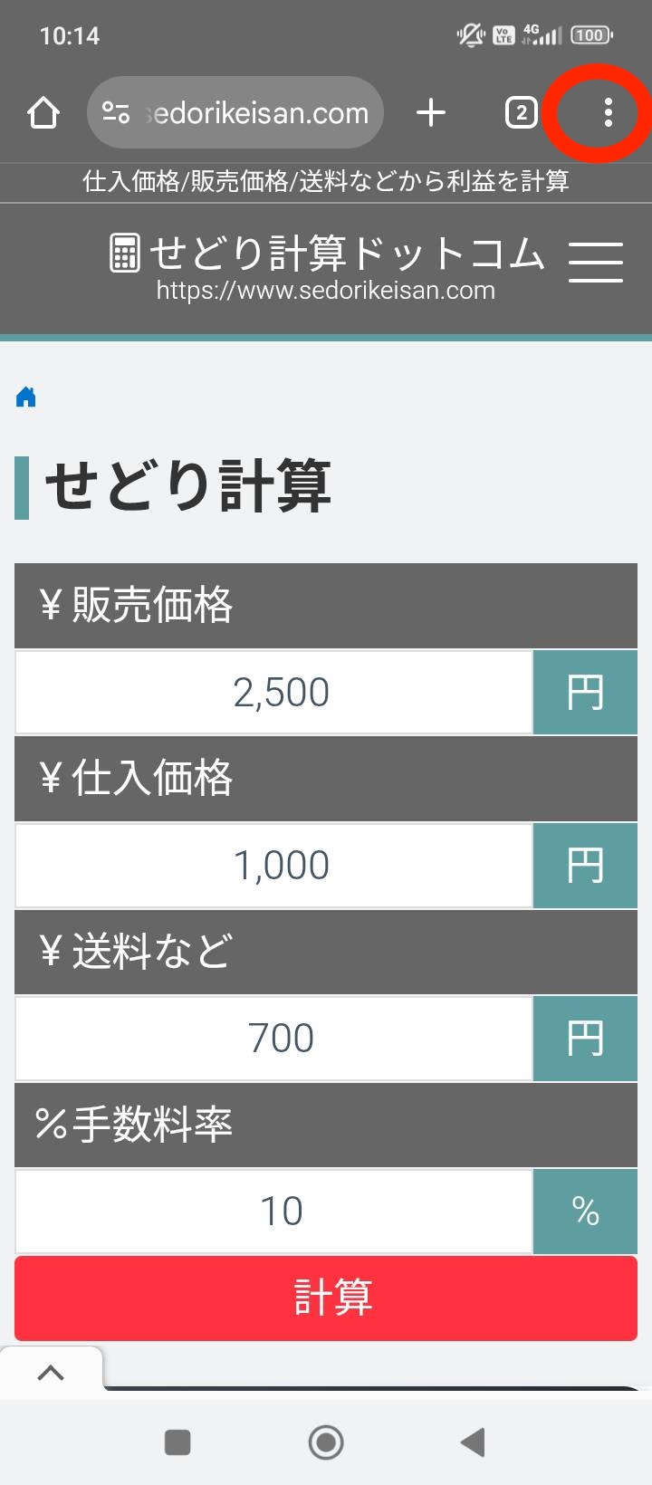 1. 「https://www.sedorikeisan.com」を Chrome ブラウザで開きます。